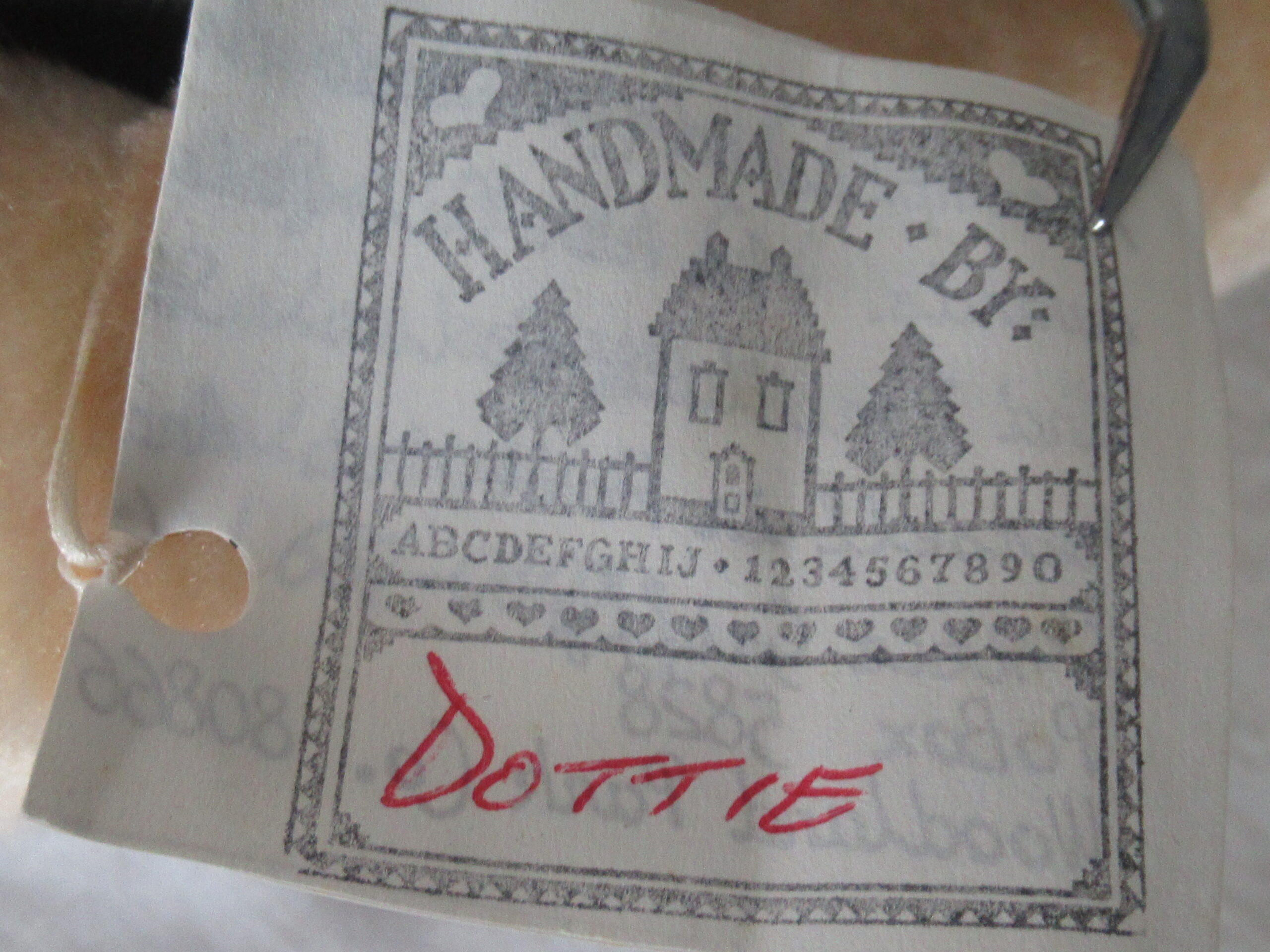 Handmade by Dottie – Unable to confirm bear is handmade or just the outfit is handmade.