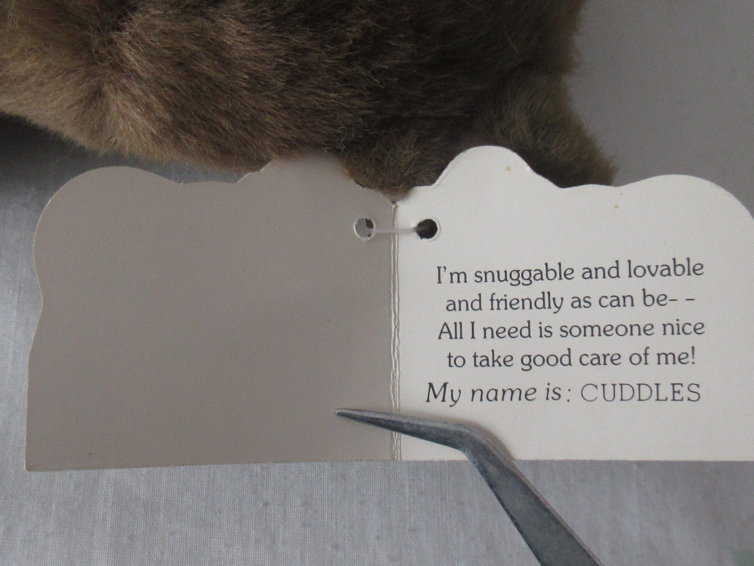 Tush Tag attached which has creases/soiling/marks – No Paper Tag attached